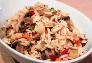 Πλένουμε τα πιπεριές και τις κόβουμε σε μικρούς κύβους. Κόβουμε τα μανιτάρια σε λεπτές φέτες και τα ρίχνουμε σε μια κατσαρόλα μαζί με τα λαχανικά, το κύβο λαχανικ...